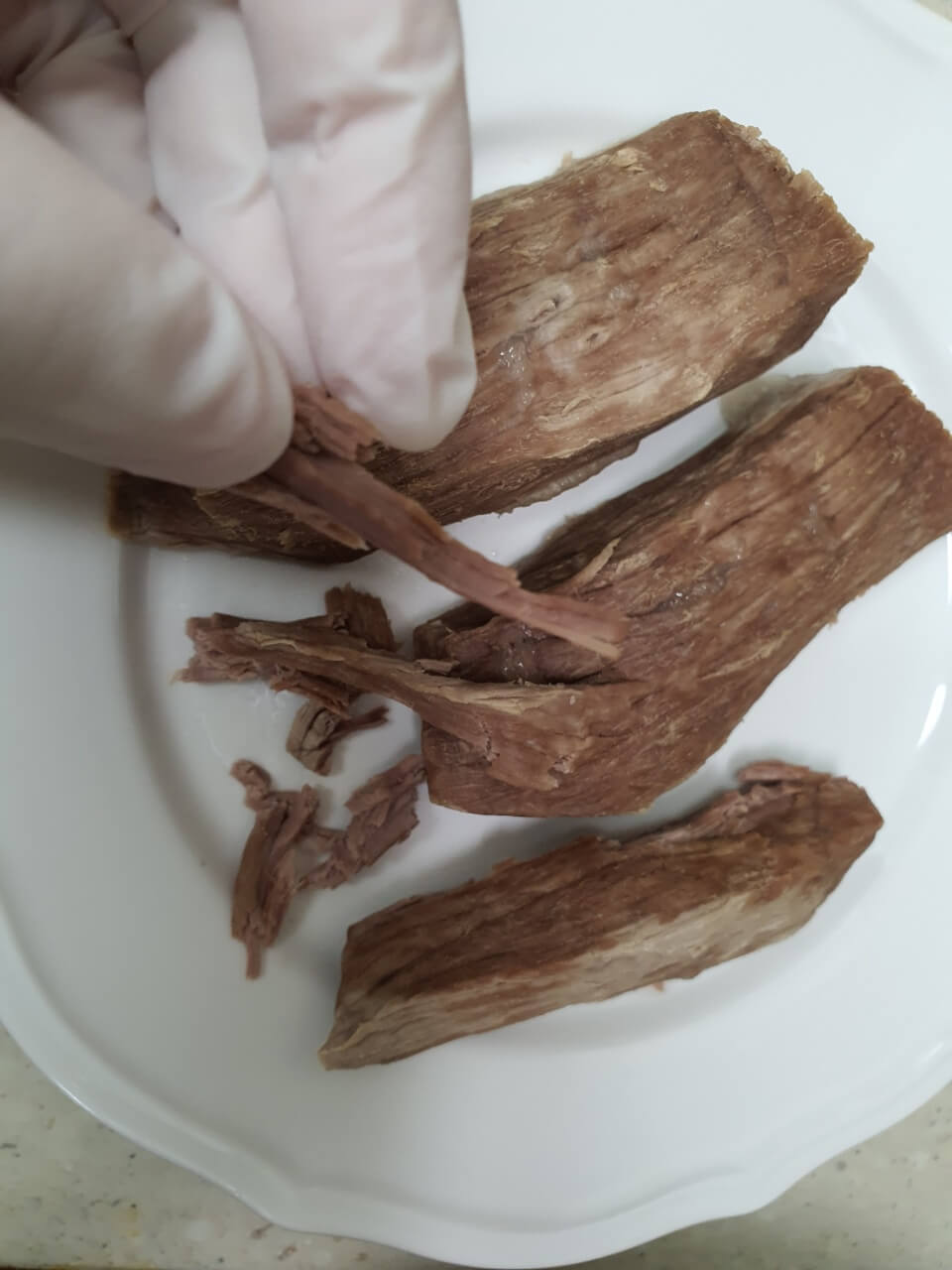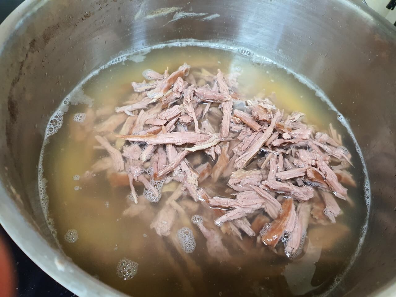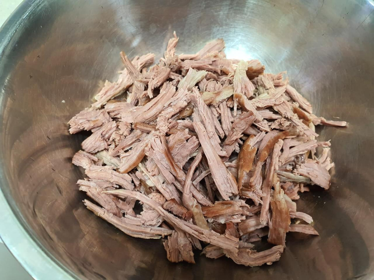 ☞ 삶은 고기는 식힌 후 손으로 쭉쭉 잘게 찢어 주세요.