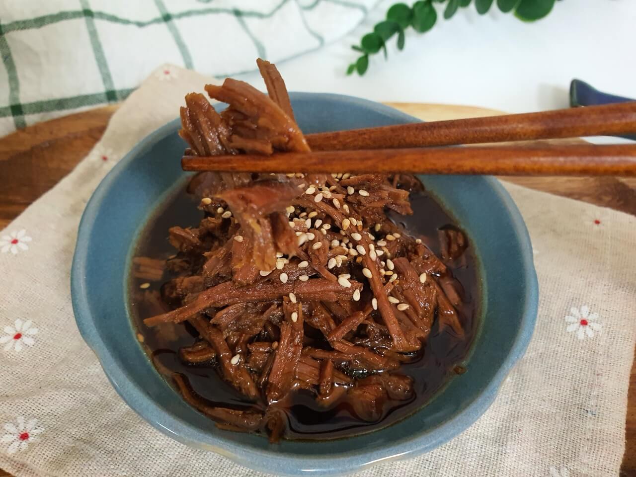 찢어지는 결을 가지고 있어 장조림용으로는 최고급으로 취급하고,
